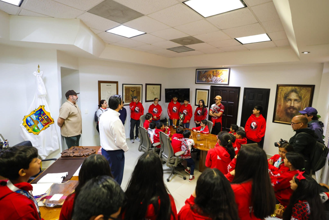 El Equipo de Natación Dragones, del Instituto Municipal del Deporte, visitó al Presidente Municipal Carlos Peña Ortiz para compartirle sus triunfos y experiencias a nivel regional y estatal, en su destacada trayectoria deportiva.